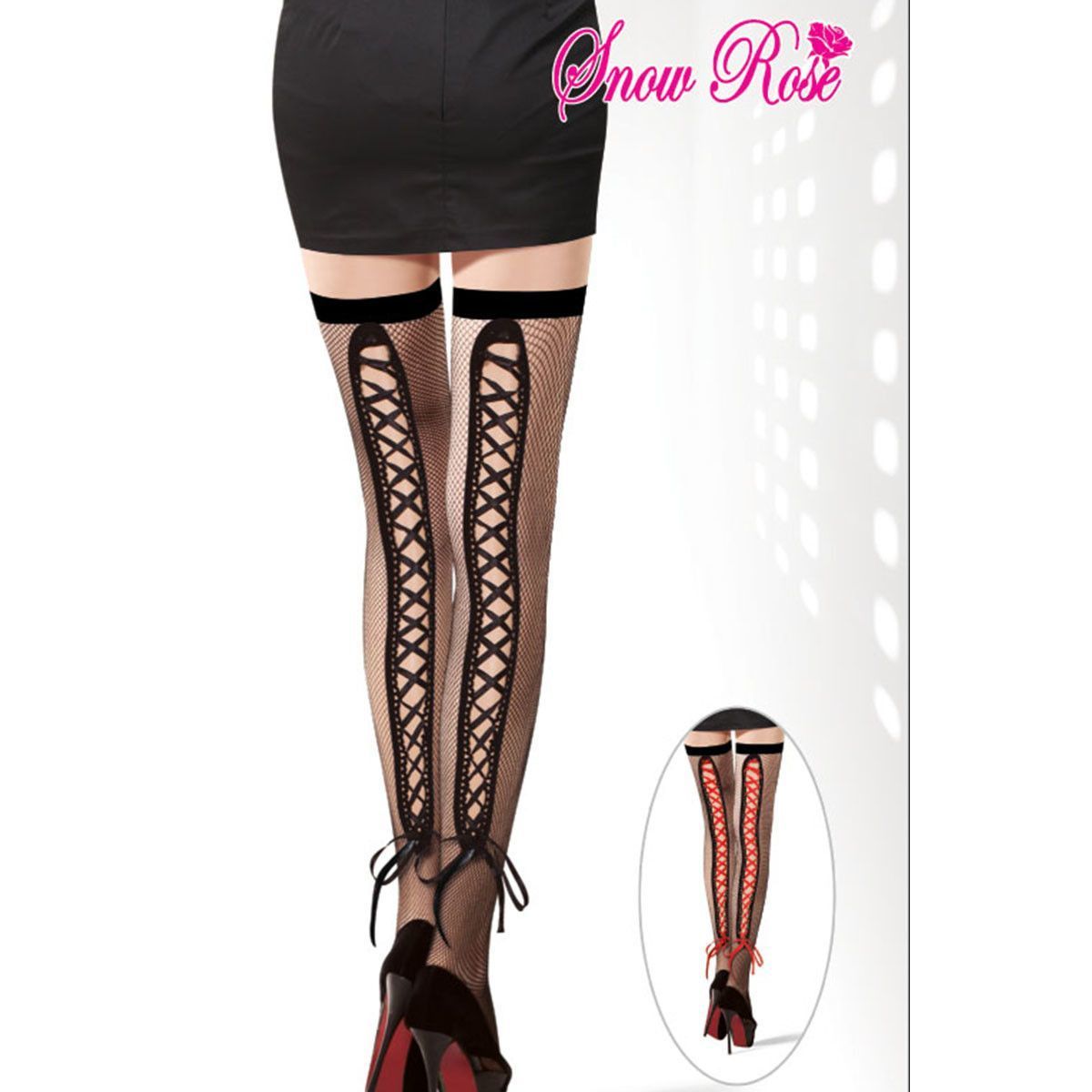 Deux coloris disponibles pour ces bas résille : noir profond ou rouge vibrant.