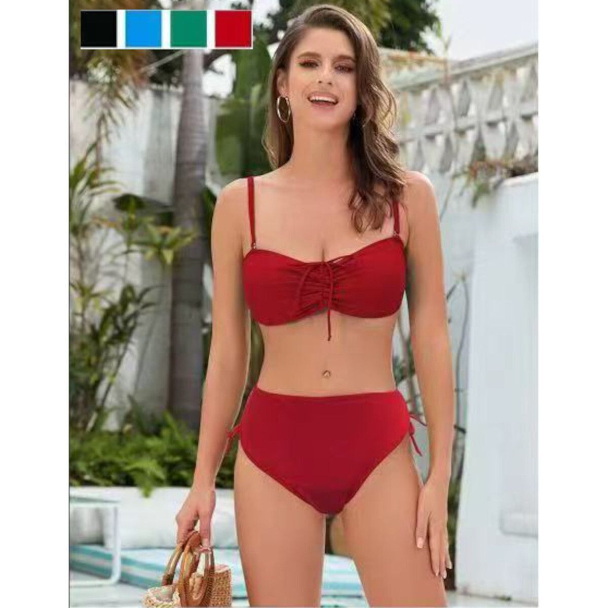 Culotte de bain à taille haute et cordons latéraux pour une touche d’originalité.