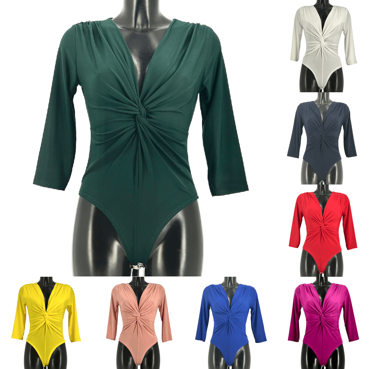 Avec un décolleté plongeant et un torsade, ce body est sophistiqué et élégant.