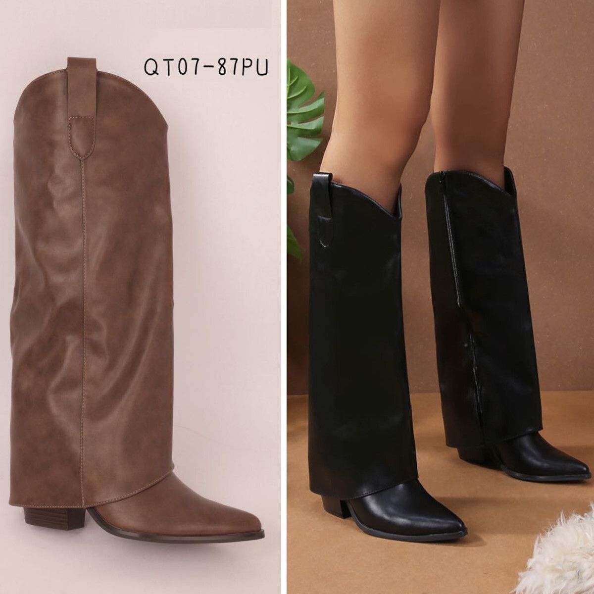 Ces bottes en simili-cuir revisitent l’esprit cowboy avec une élégance contemporaine.