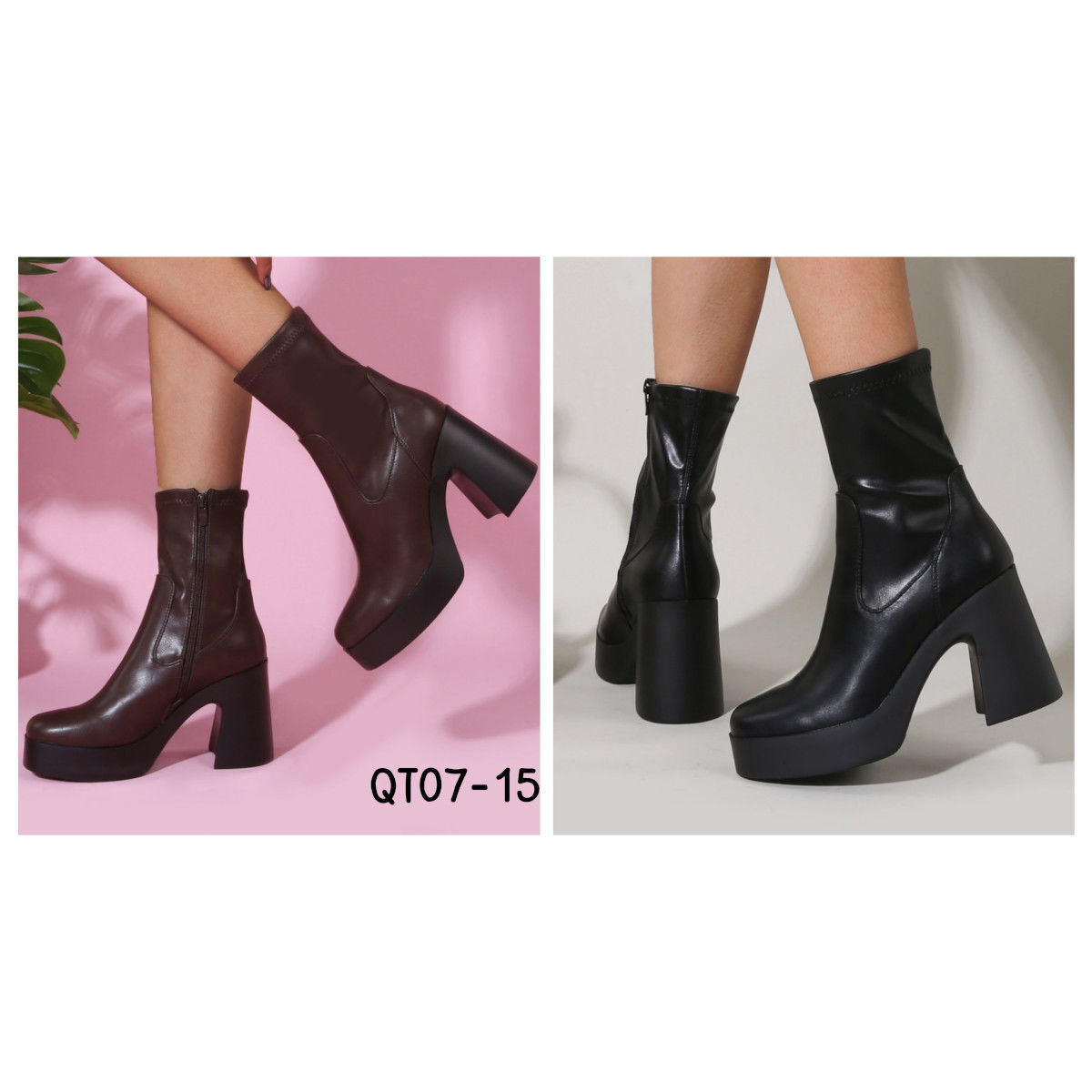 Bottine pour femme conçue en cuir synthétique souple de bonne qualité.
