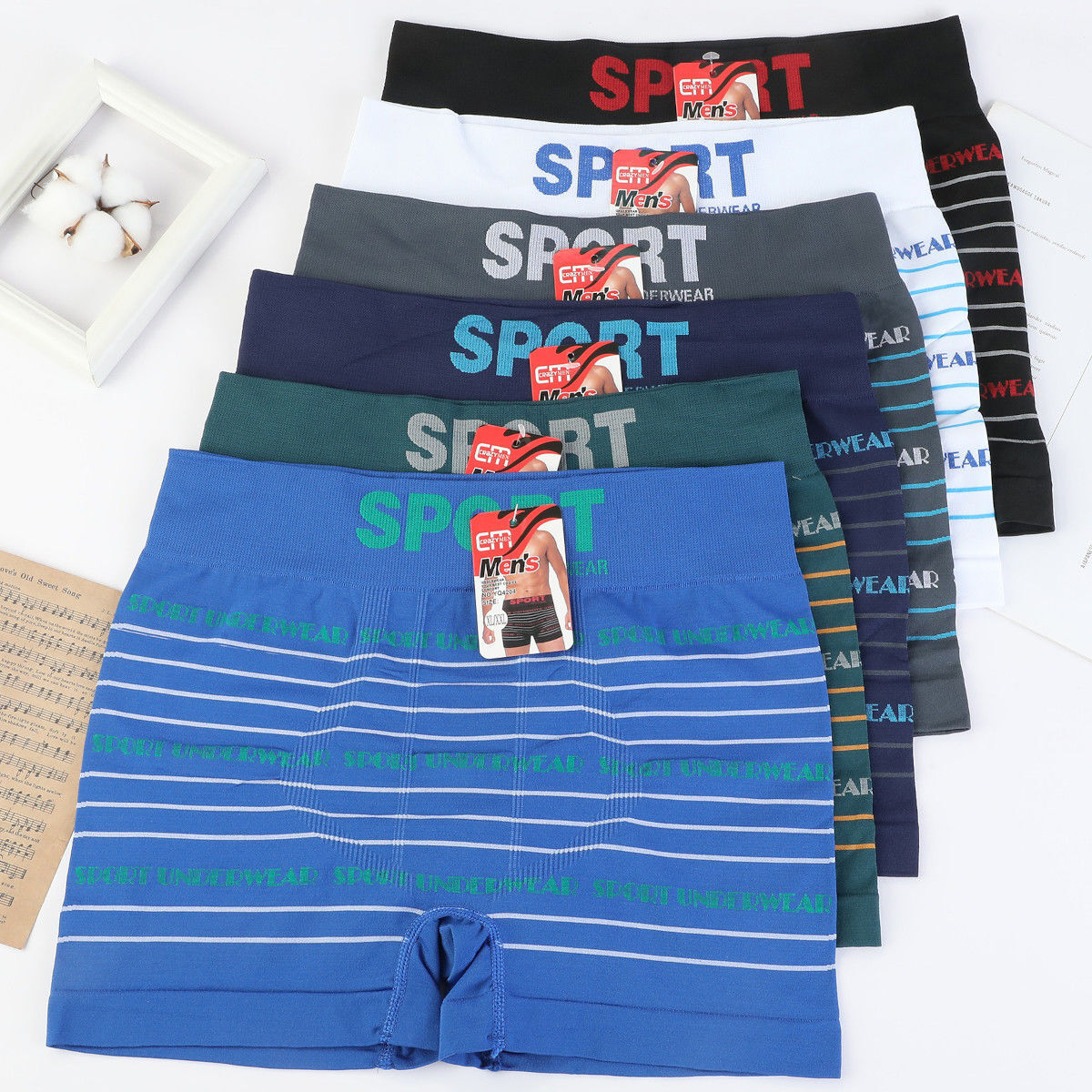 Imprimé avec des fines rayures et écritures « SPORT UNDERWEAR »
