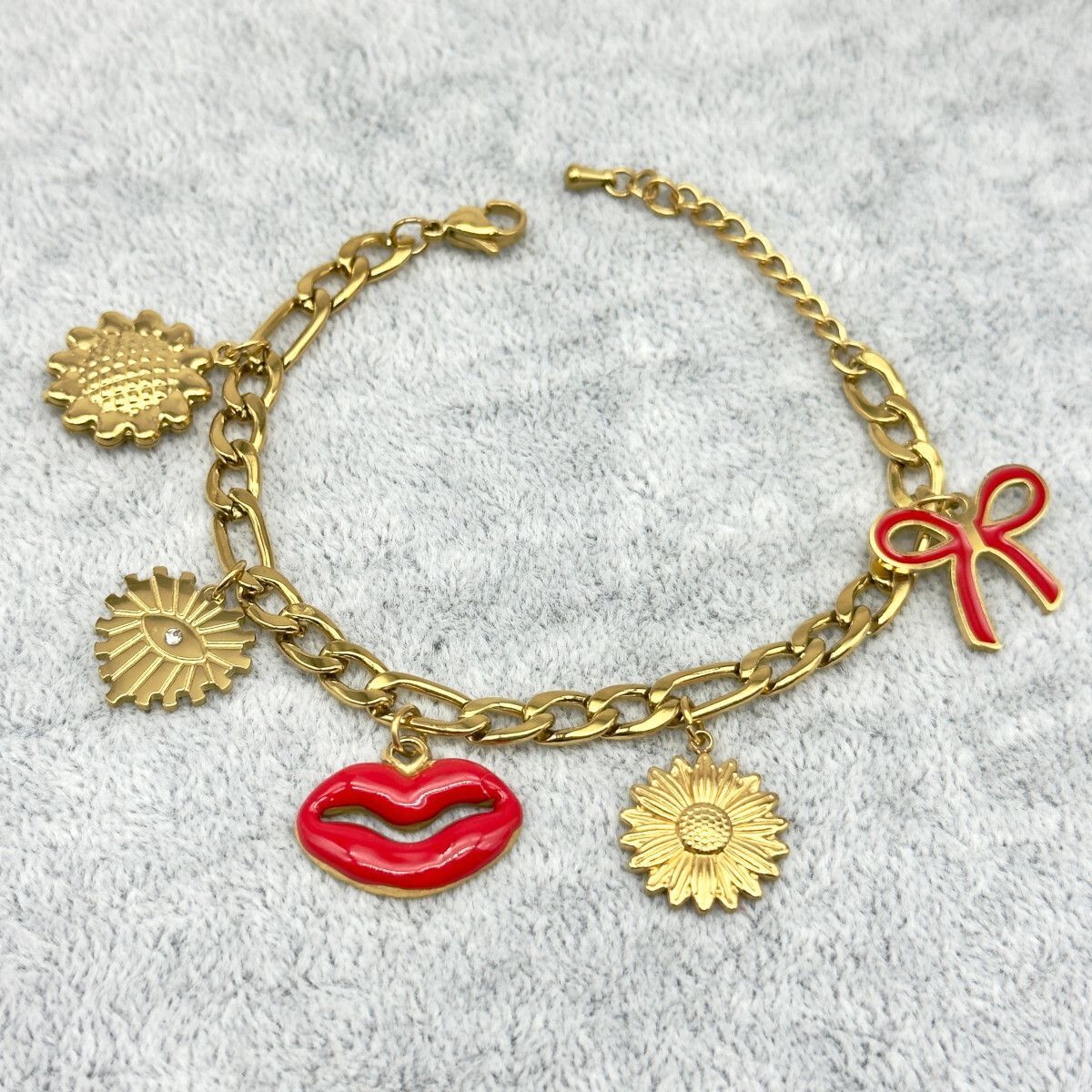 Orné de cinq breloques variées et ludiques, fixées tout au long de la chaîne.