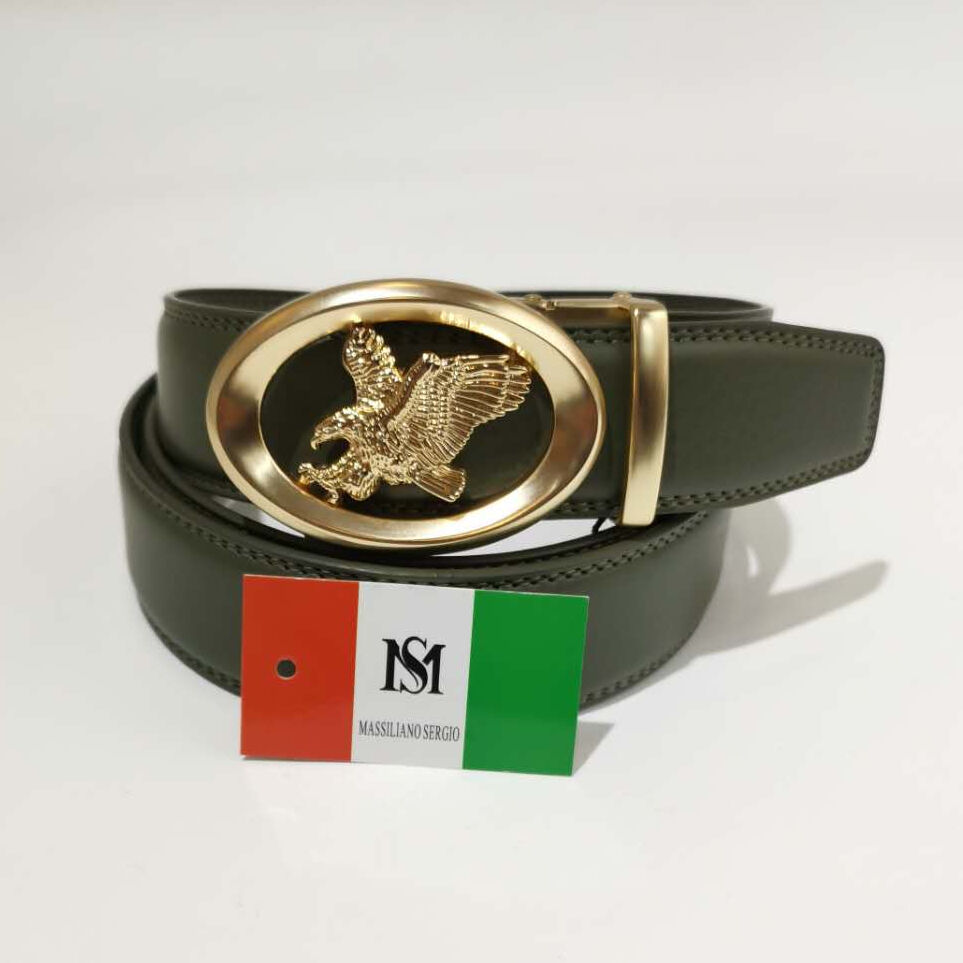 Sa boucle automatique de forme ovale est ornée d’un encadrement doré éclatant.
