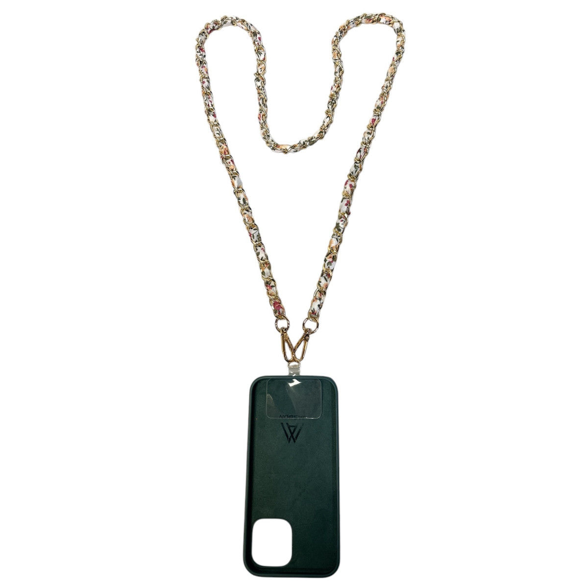 Aux extrémités, des anneaux en métal assurent une fixation simple et sécurisée au téléphone.