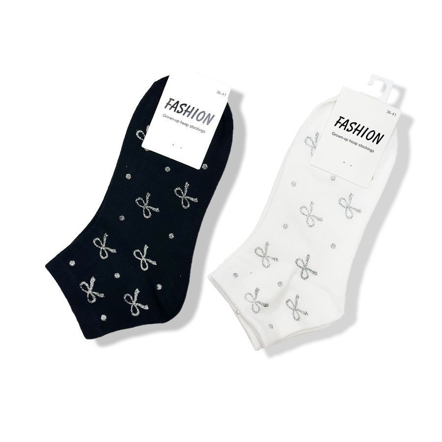 Chaussettes femme fabriquées à partir d'un mélange de coton, de polyester et d'élasthanne.