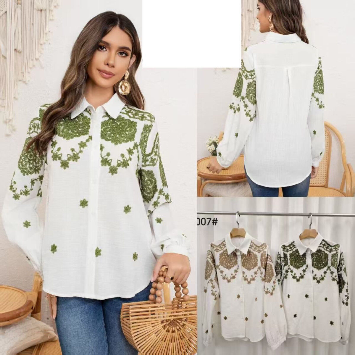 Options colorées : Blanc brodé de Marron ou Blanc brodé de Vert.