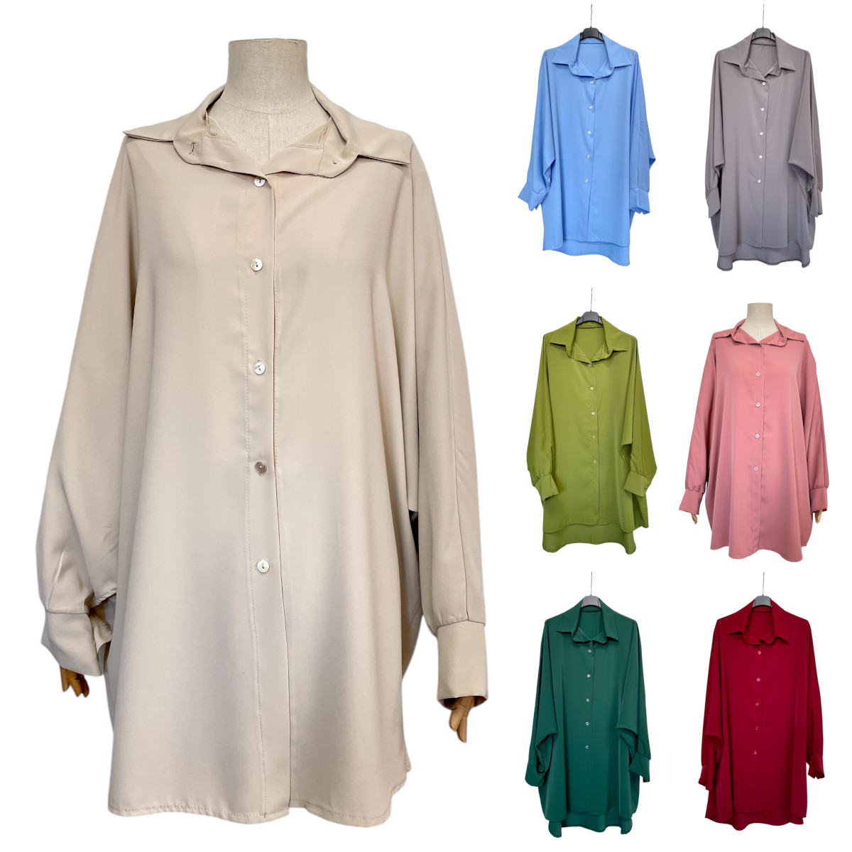 Cette chemise se distingue par une coupe ample et légèrement asymétrique, offrant un tombé fluide.