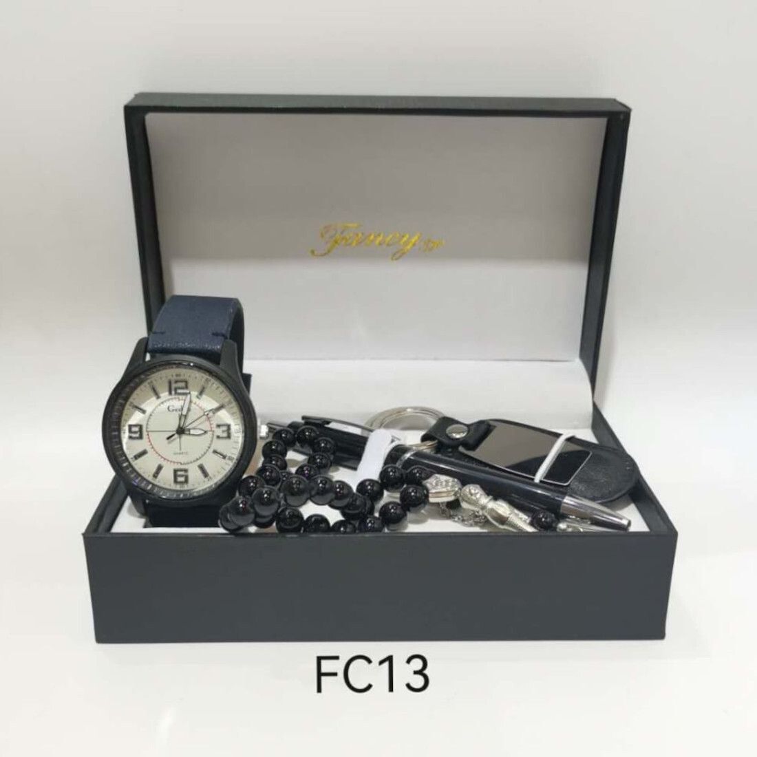Un coffret cadeau 4-en-1 élégant : montre, chapelet, stylo et porte-clés que vous pouvez personnaliser.