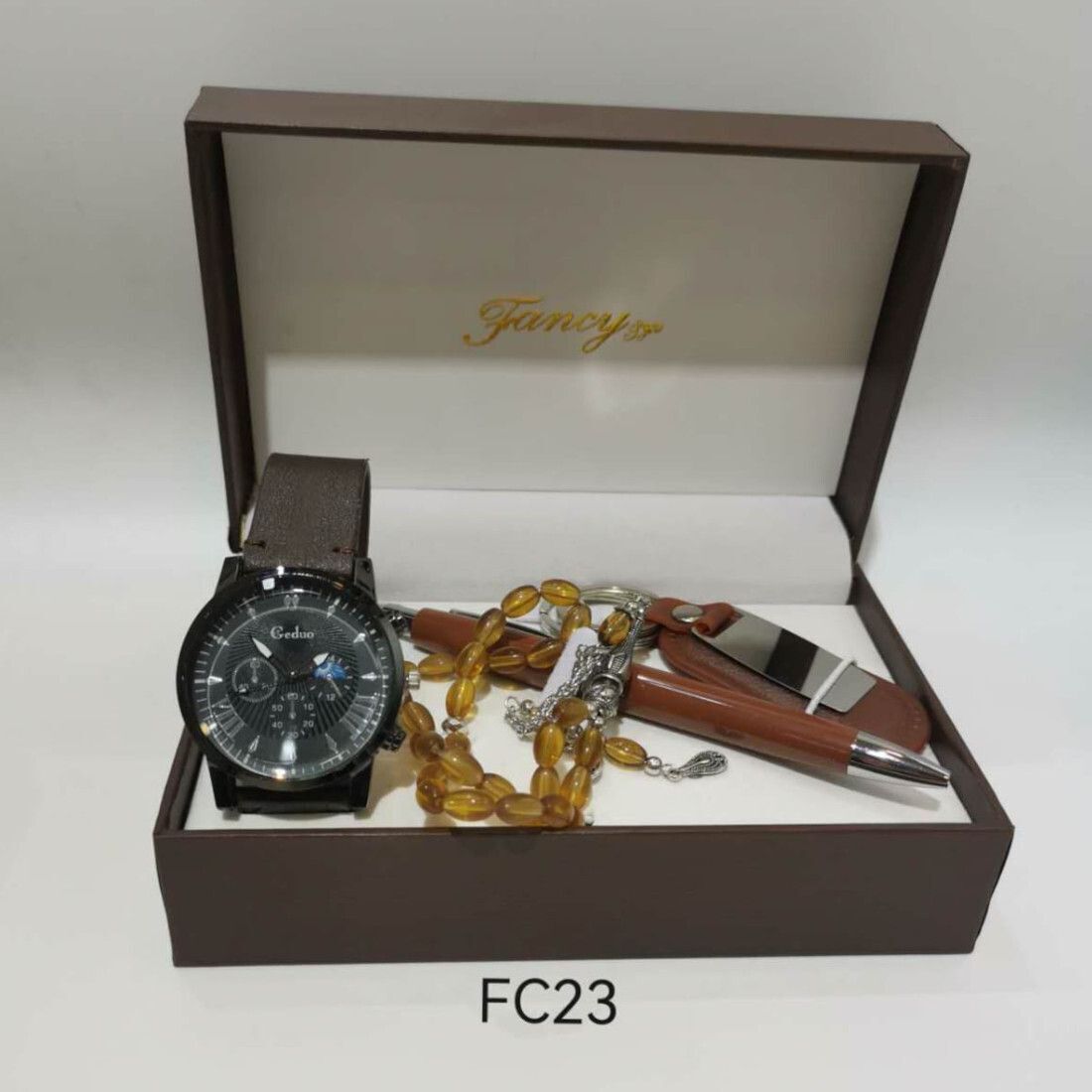 Il contient une montre, un chapelet, un stylo et un porte-clés que vous pouvez graver par vos soins.