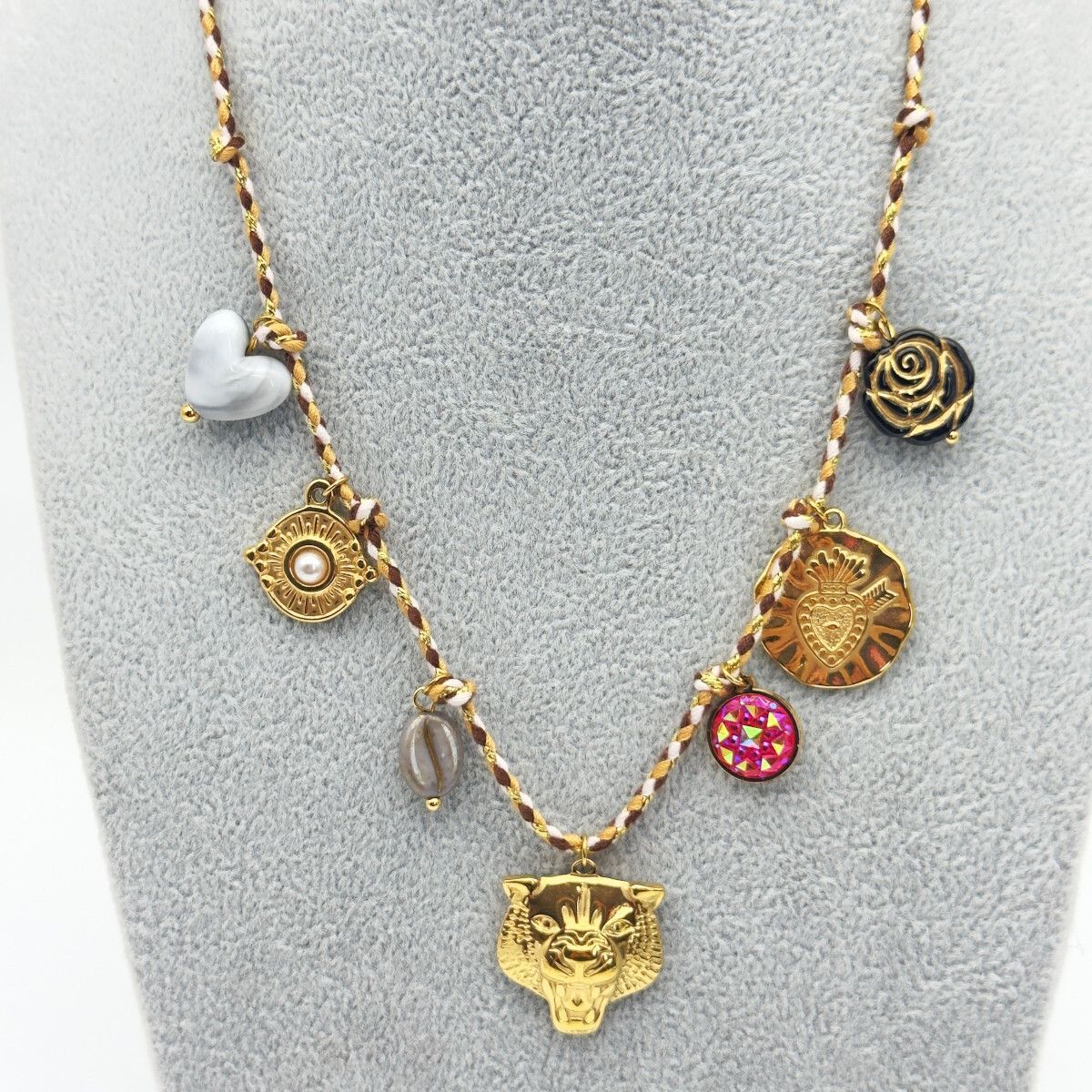 Collier aux multiples symboles, parfait pour celles qui souhaitent allier audace et sophistication.