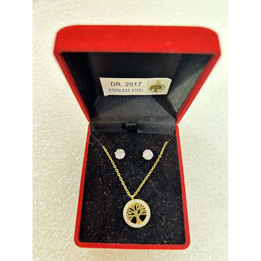 Collier à pendentif de cercle arbre de vie accentué de cristaux de verre.