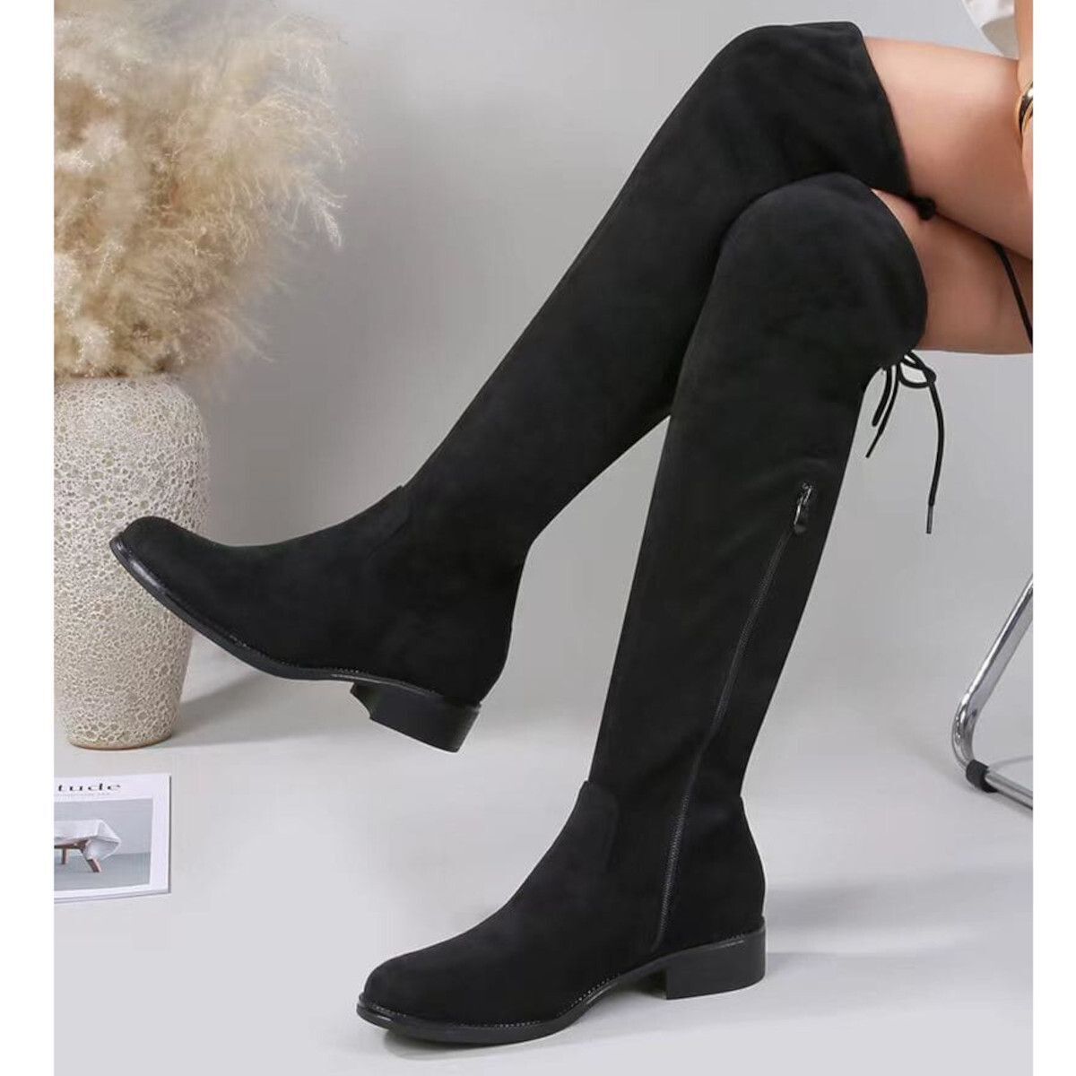 Style et confort réunis, même pour les grandes pointures, grâce à ces bottes style cuissardes.