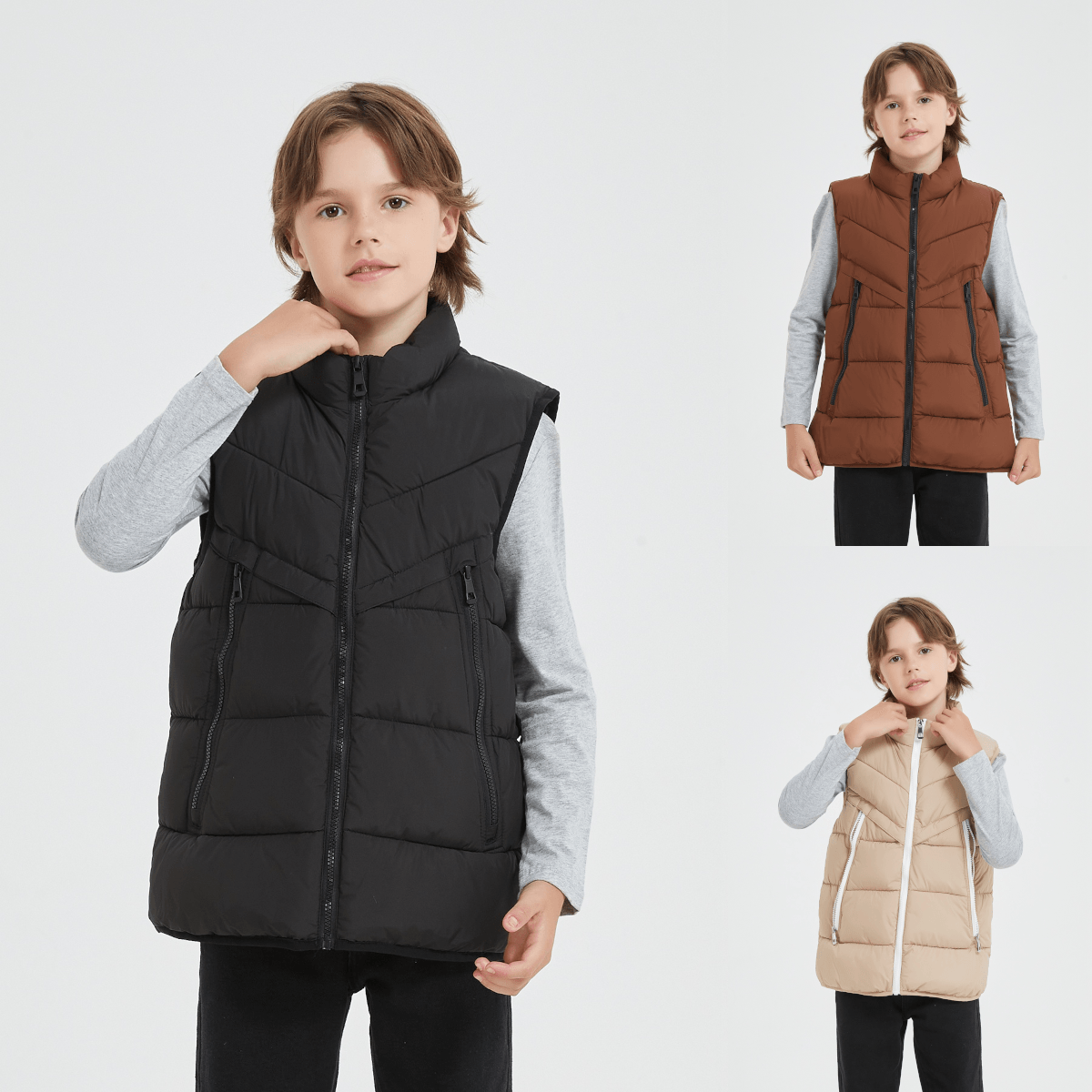 Doudoune sans manches pour enfant, idéale pour la mi-saison avec son modèle matelassé.