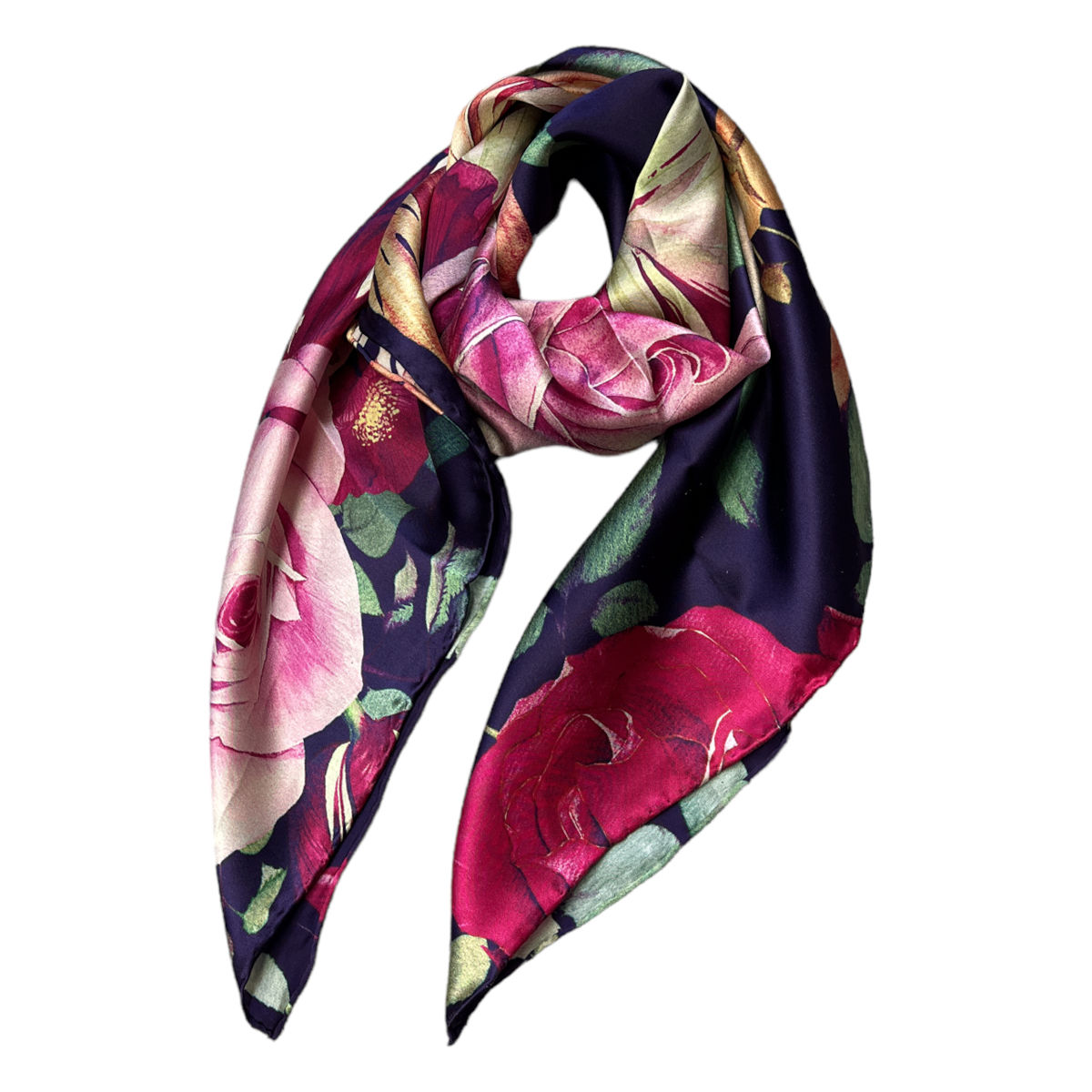 Foulard carré pour femme fabriqué en pure soie dans une finition satinée.