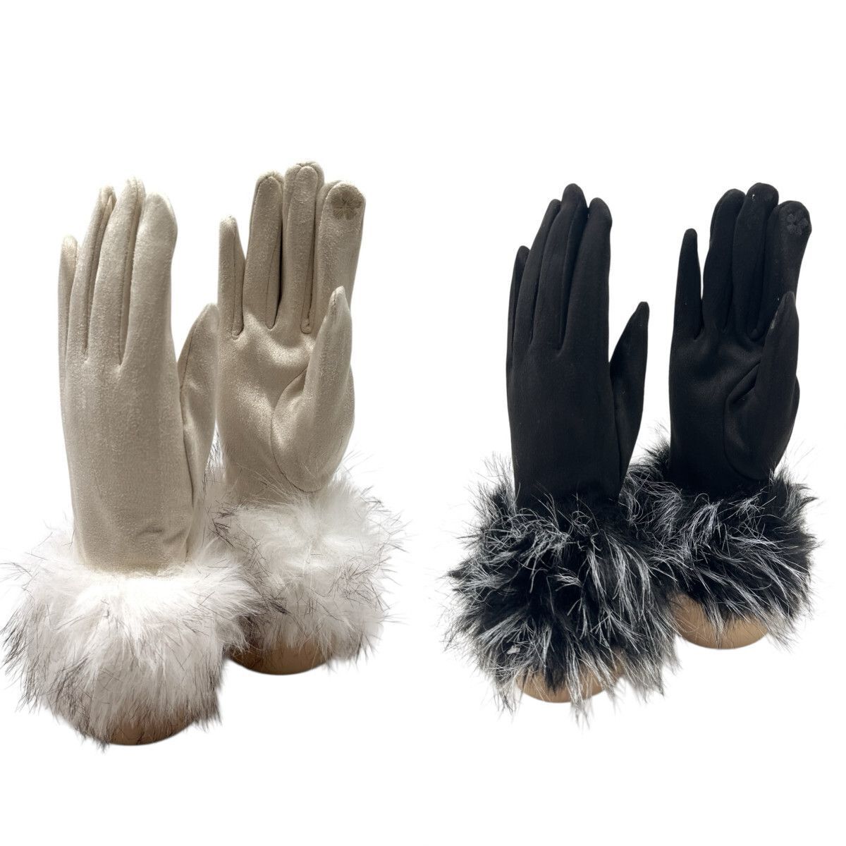 Les gants allient la douceur de la suédine à la richesse de la fausse fourrure.