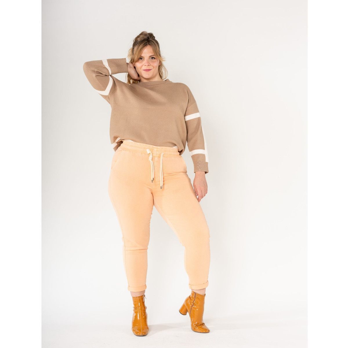 Jogging en coton et élasthanne stretch, élastiqué à la taille avec un cordon.