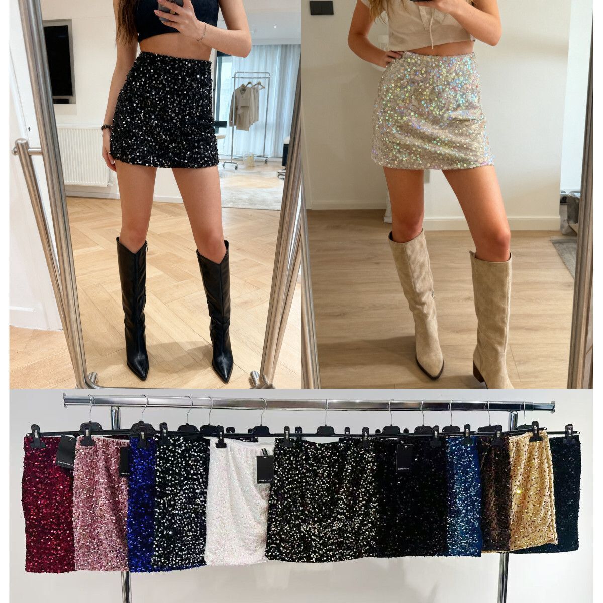 Jupe pailletée automne-hiver, idéale pour égayer vos soirées festives.