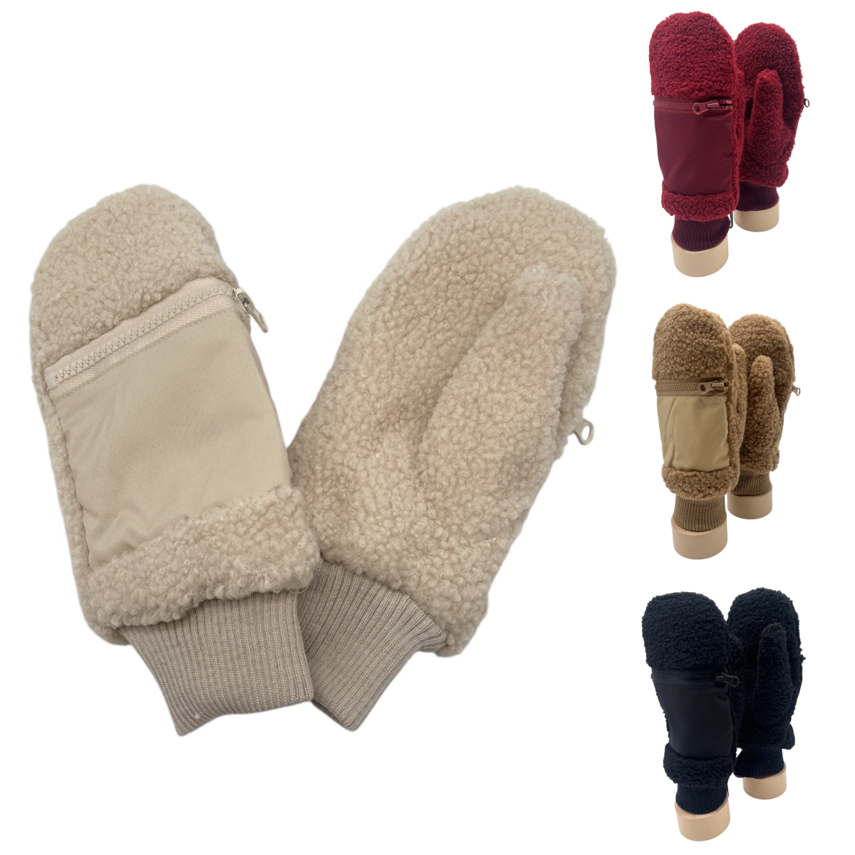 Moufles féminines style mouton, réalisées en 100 % polyester chaud et confortable.