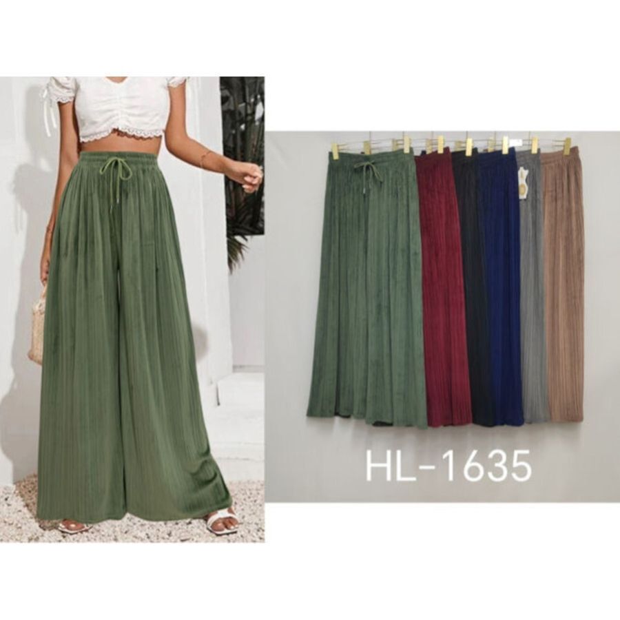 Doté d’une coupe wide-leg fluide et d’un plissé vertical, il allonge élégamment la jambe.