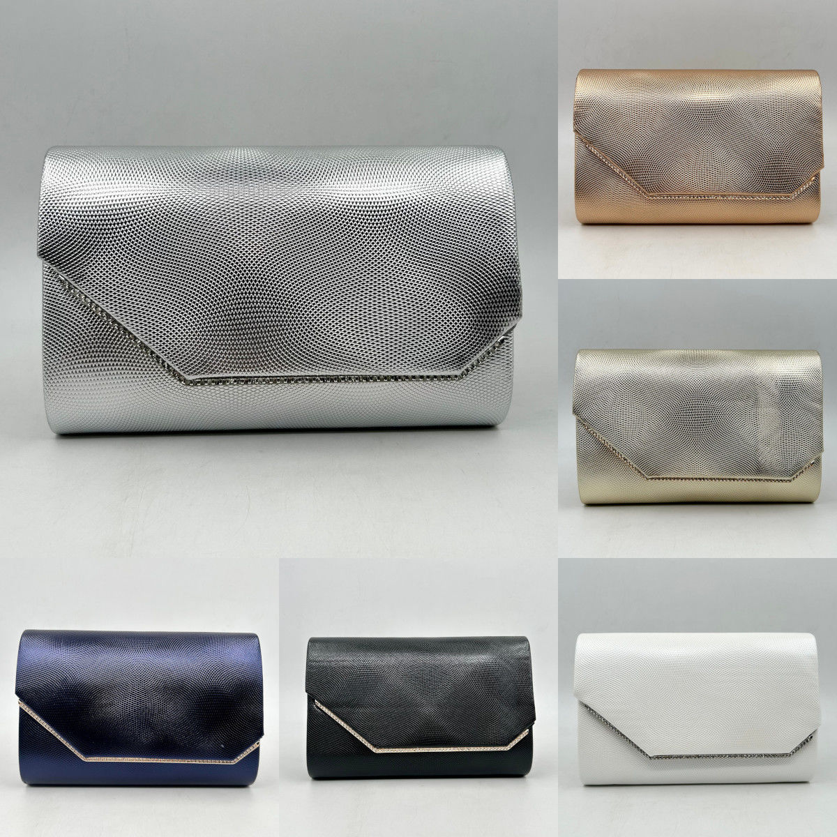 Cette pochette de soirée est texturée, semblable à un tissage léger au motif géométrique délicat.
