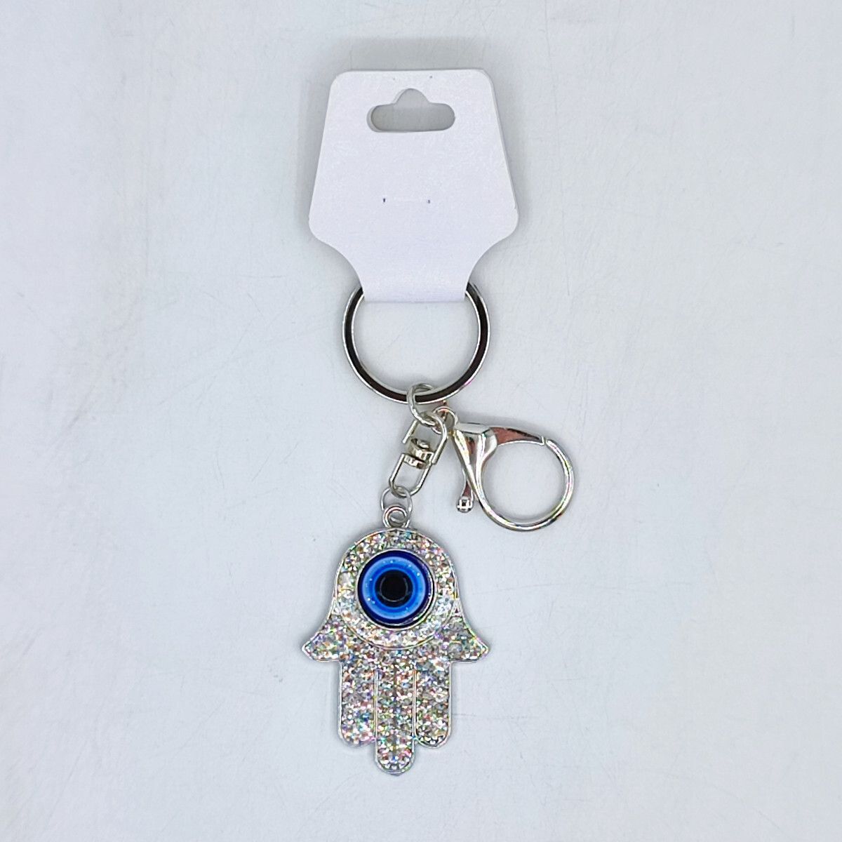 L’emblématique Nazar Boncuk trône au centre de la paume, éclatant d’un bleu saphir intense.