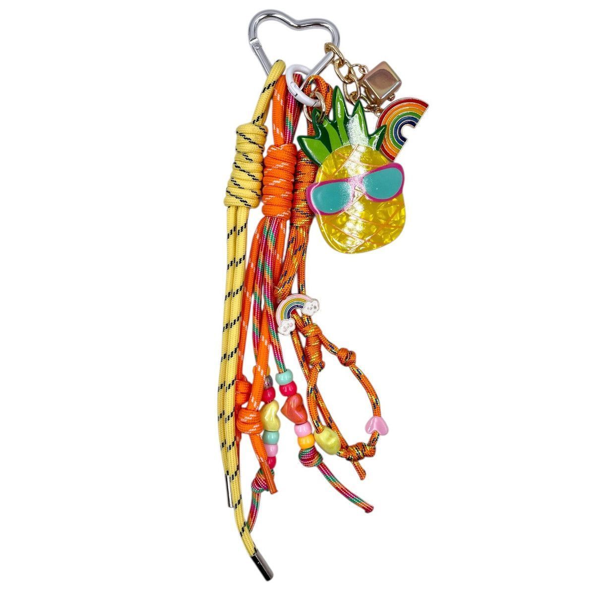 Attachée au porte-clés, une breloque arc-en-ciel souligne le thème joyeux et coloré.