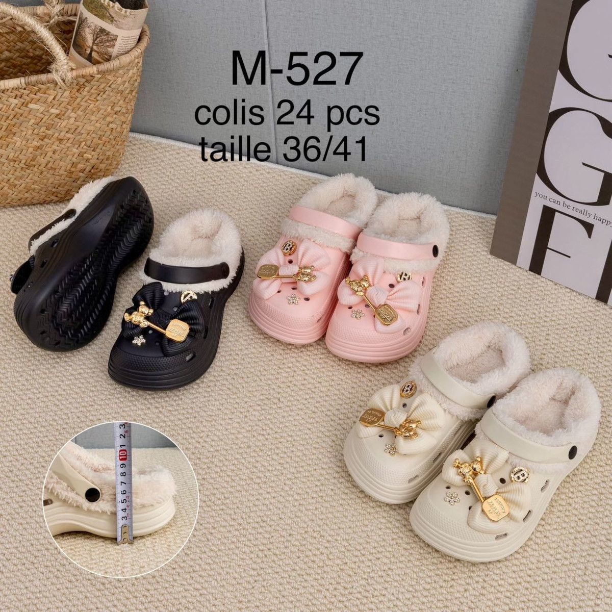 Les sabots d’intérieur se démarquent par leur style cosy et leurs détails décoratifs chics.