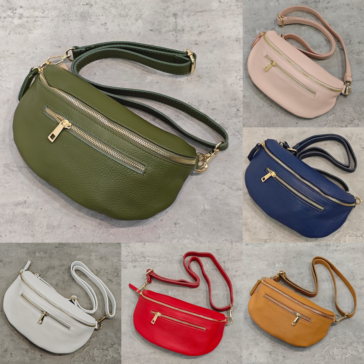 Sac banane fait d'une matière en croûte de cuir grainé, résistante et texturée pour un rendu unique.