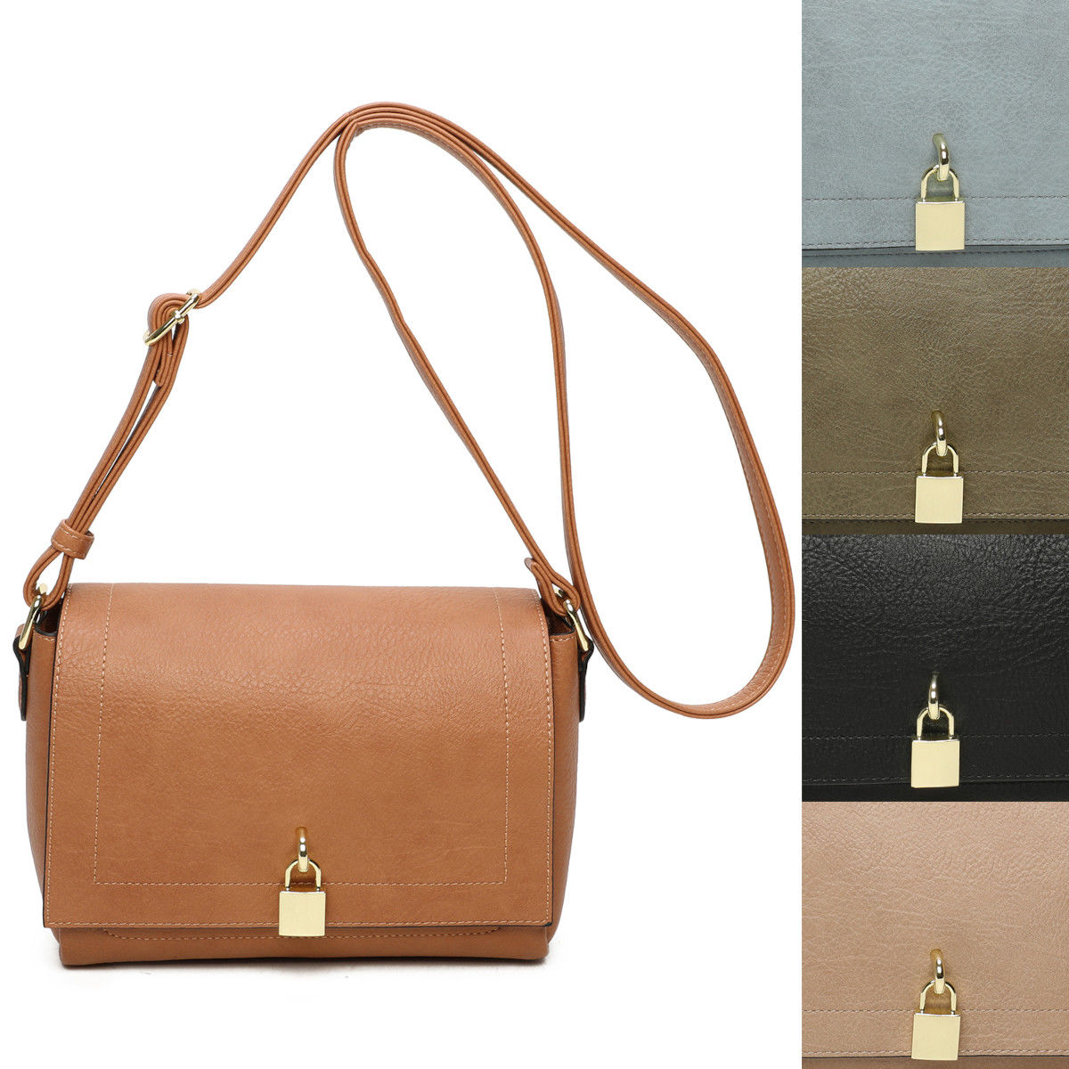 Le cadenas doré à l’avant rehausse le sac d’une touche originale et sophistiquée.