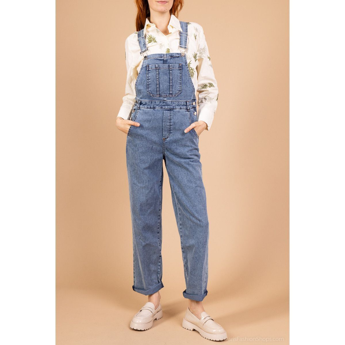 Conçue dans un denim bleu légèrement délavé, cette salopette dégage une authenticité rétro.
