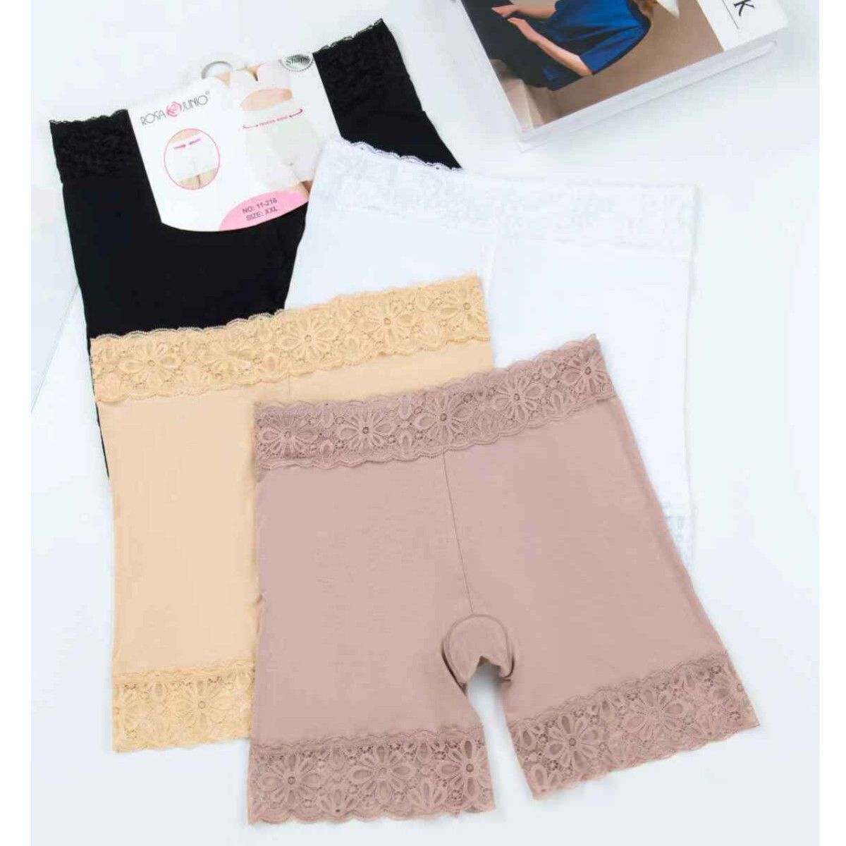Ceinture élastique flexible et ourlets de jambes ornés d’une fine dentelle.