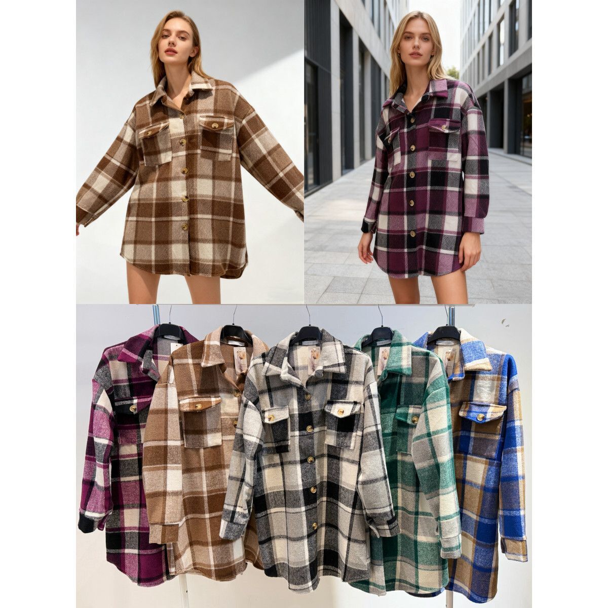 Veste-chemise mi-longue à carreaux pour femme, chic et décontractée pour l’automne.